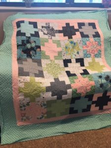 Pastel Colors with a feathered quilt pattern. By Ruth M.